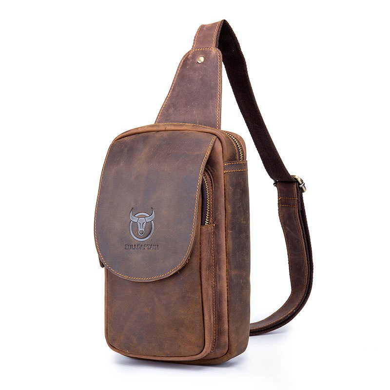 为您提供商品牛船长疯马皮复古真皮胸包头层牛皮单肩斜挎包休闲背包手机包男包的详细介绍,