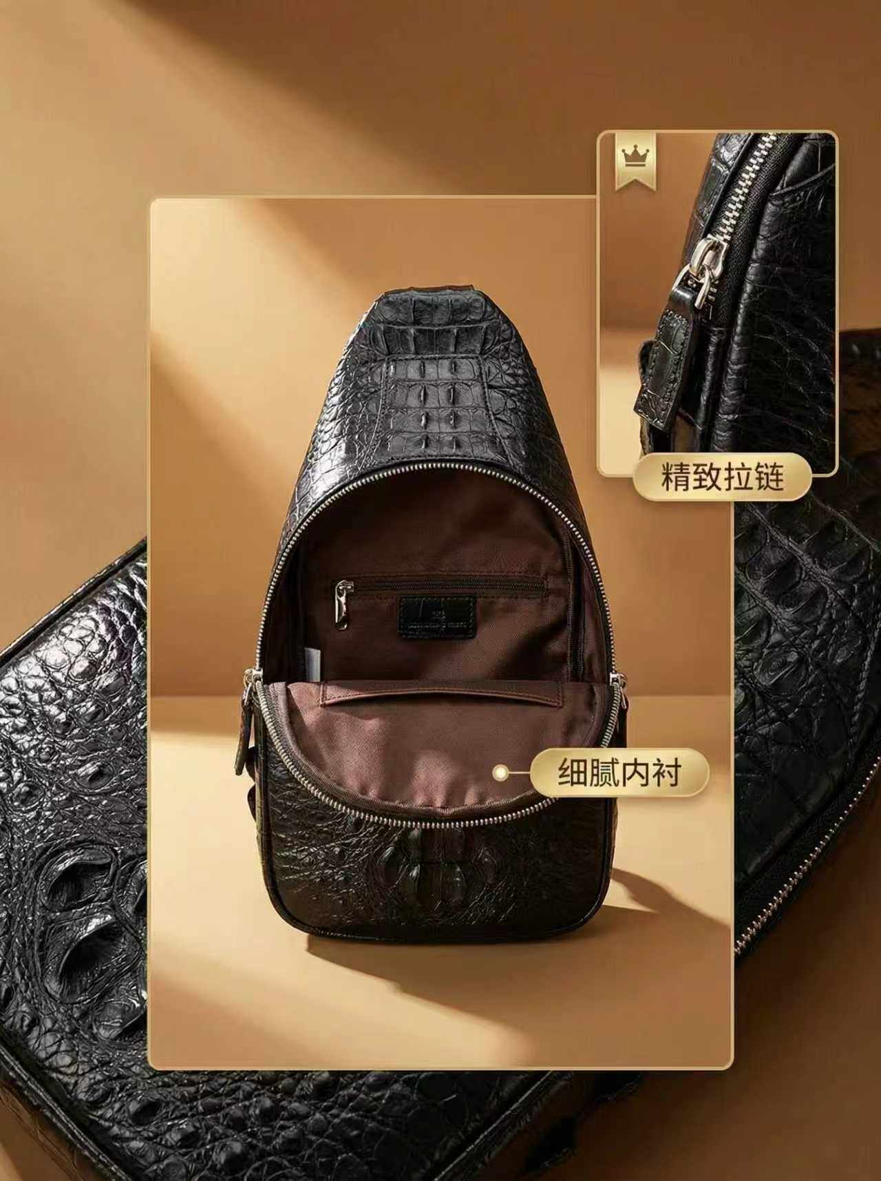 为您提供商品真皮单肩包休闲斜挎包鳄鱼骨皮胸包男包轻便 黑曼巴鳄鱼皮胸包男士的详细介绍,