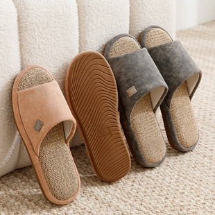 夏季 2025日式 复古亚麻特价 拖鞋 室内居家透气静音防滑 情侣家居新款