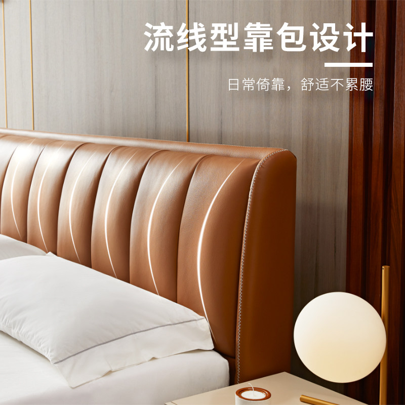 慕思皮床主卧婚床真皮床现代简约实木床架轻奢网红皮艺床双人慕斯