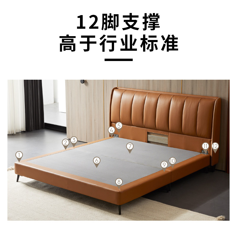 真皮床2米x2米2主卧大床现代轻奢高级感1米8皮艺软包储物婚床 意式