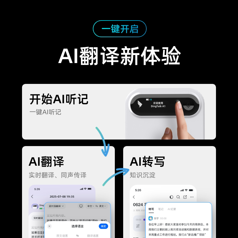 日语 DingTalk 实时转写翻译 英语 多种语言 智能翻译机 钉钉A1 会议翻译机中英互译机 德语 俄语 翻译器