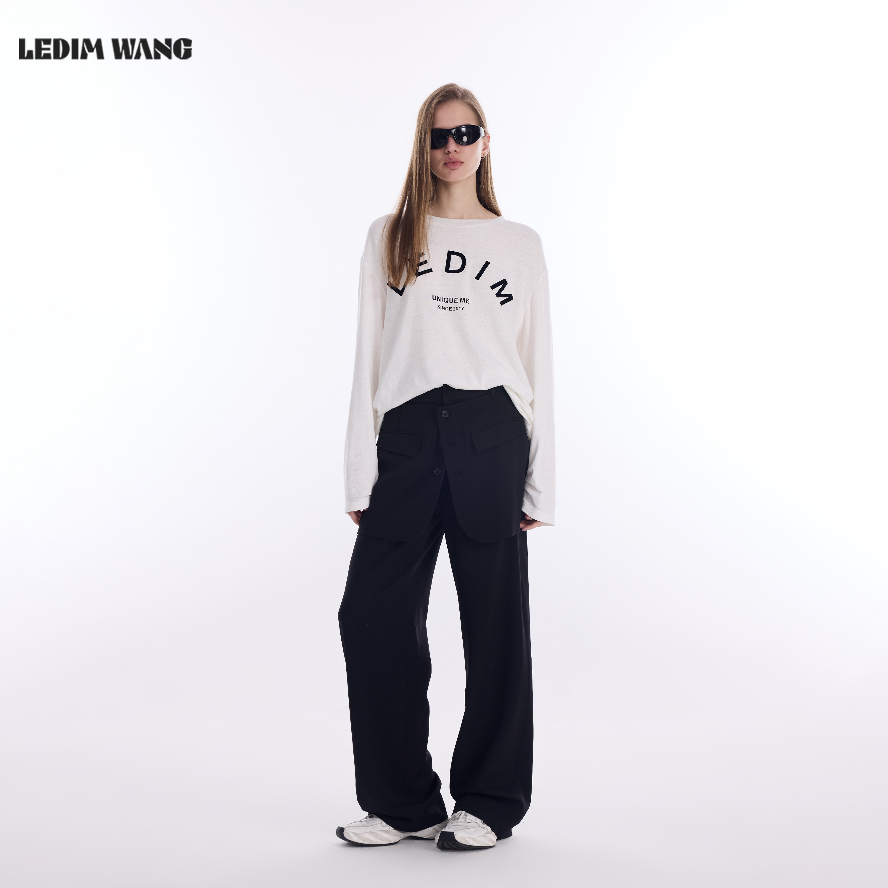 新款 LEDIM WANG高智感搭片西裤 2026春季 黑色直筒通勤百搭休闲长裤由