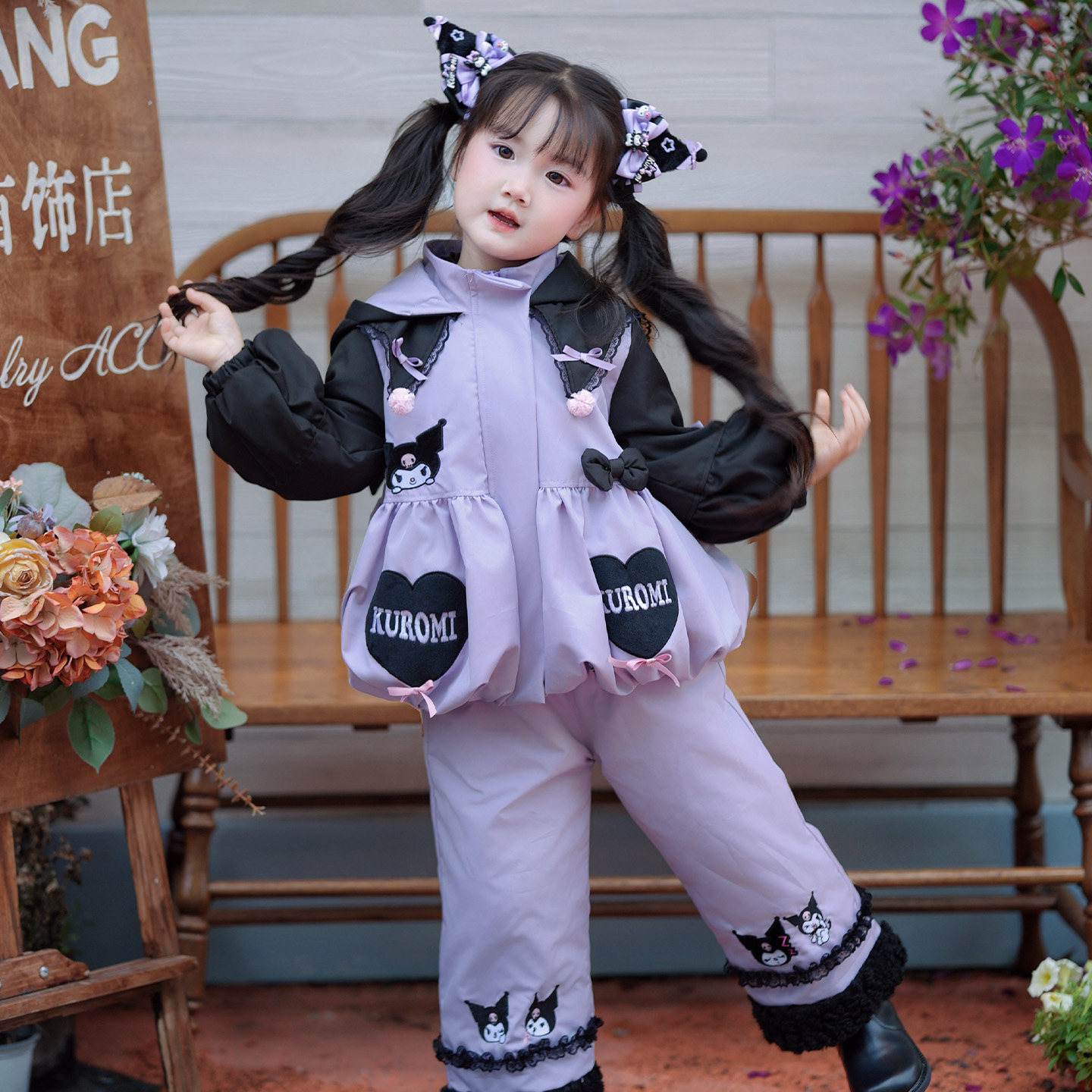 粗腿原创库洛米棉服套装 女宝卡通休闲保暖两件套洋气 女童秋冬新款