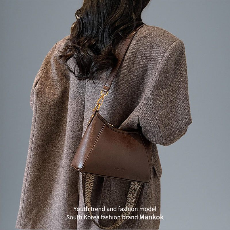 为您提供商品Mankok高级感复古软皮斜挎包女小包2026新款 百搭单肩腋下包 潮时尚的详细介绍,