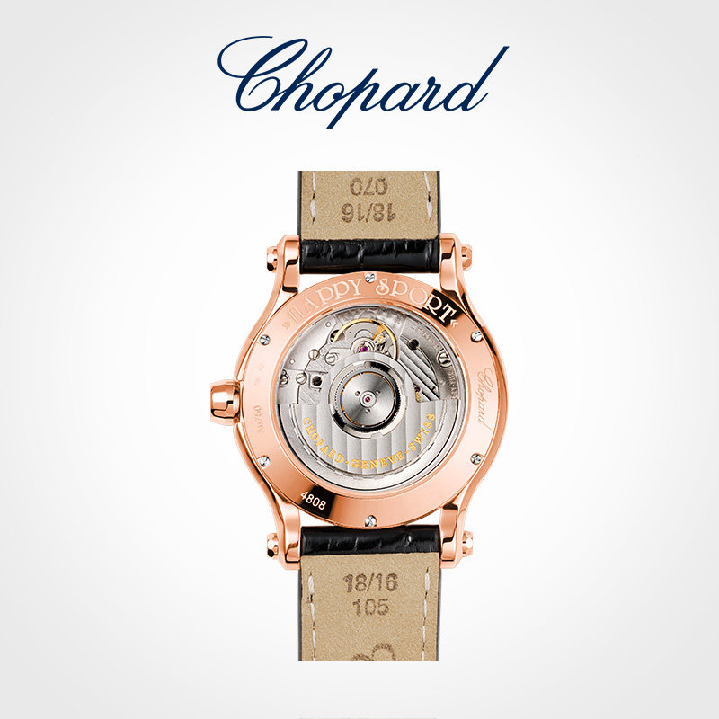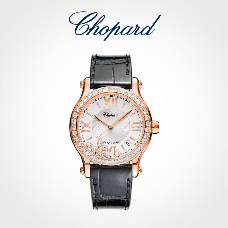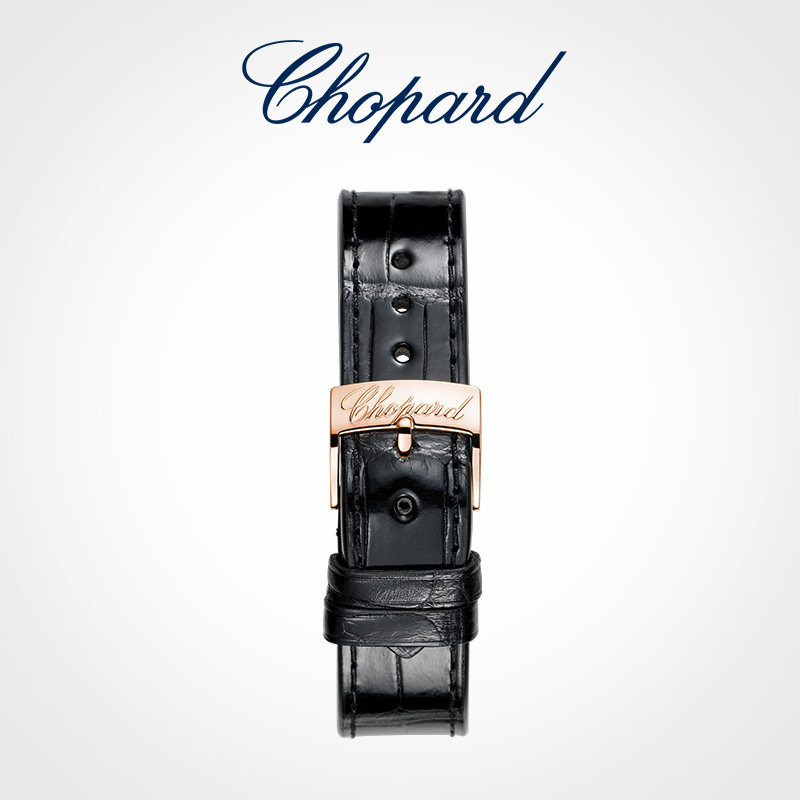 Chopard萧邦快乐钻石18K玫瑰金机械腕表黑表带手表生日礼物送女友由