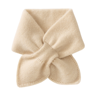 针织秋冬双层保暖穿孔交叉护颈小围脖 儿童100%纯羊绒围巾男女童款