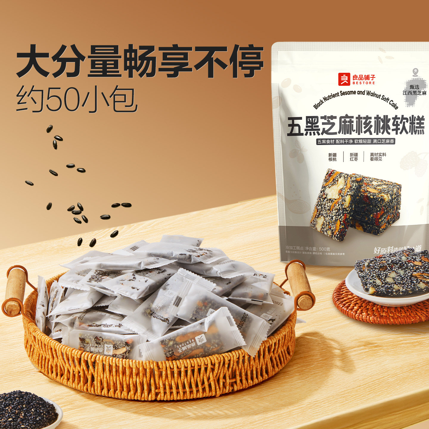 良品铺子五黑芝麻核桃软糕官方旗舰店正品 休闲零食小吃独立包装由