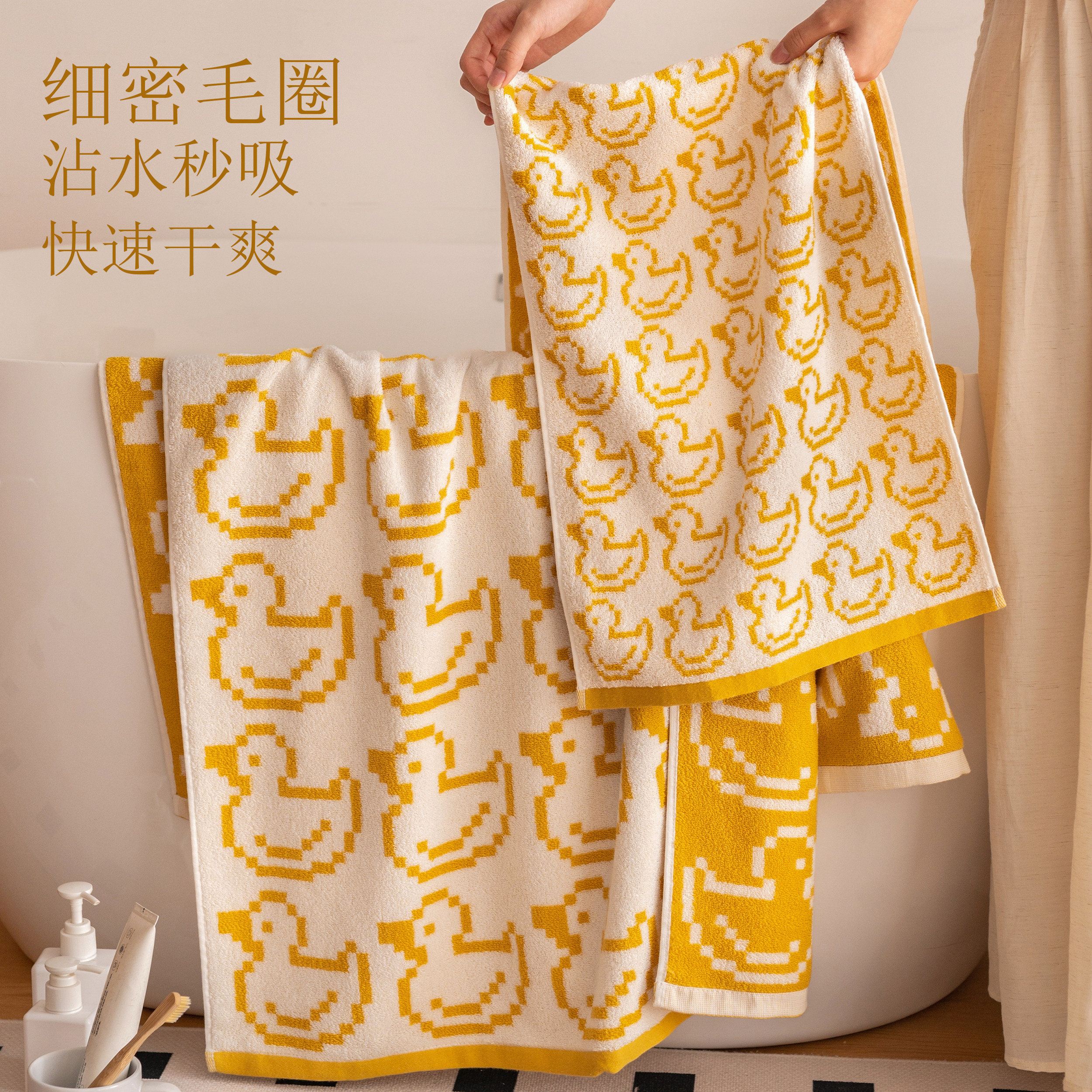 全棉吸水洗脸面巾擦手巾 黄色小鸭纯棉方巾毛巾浴巾三件套大人新款由