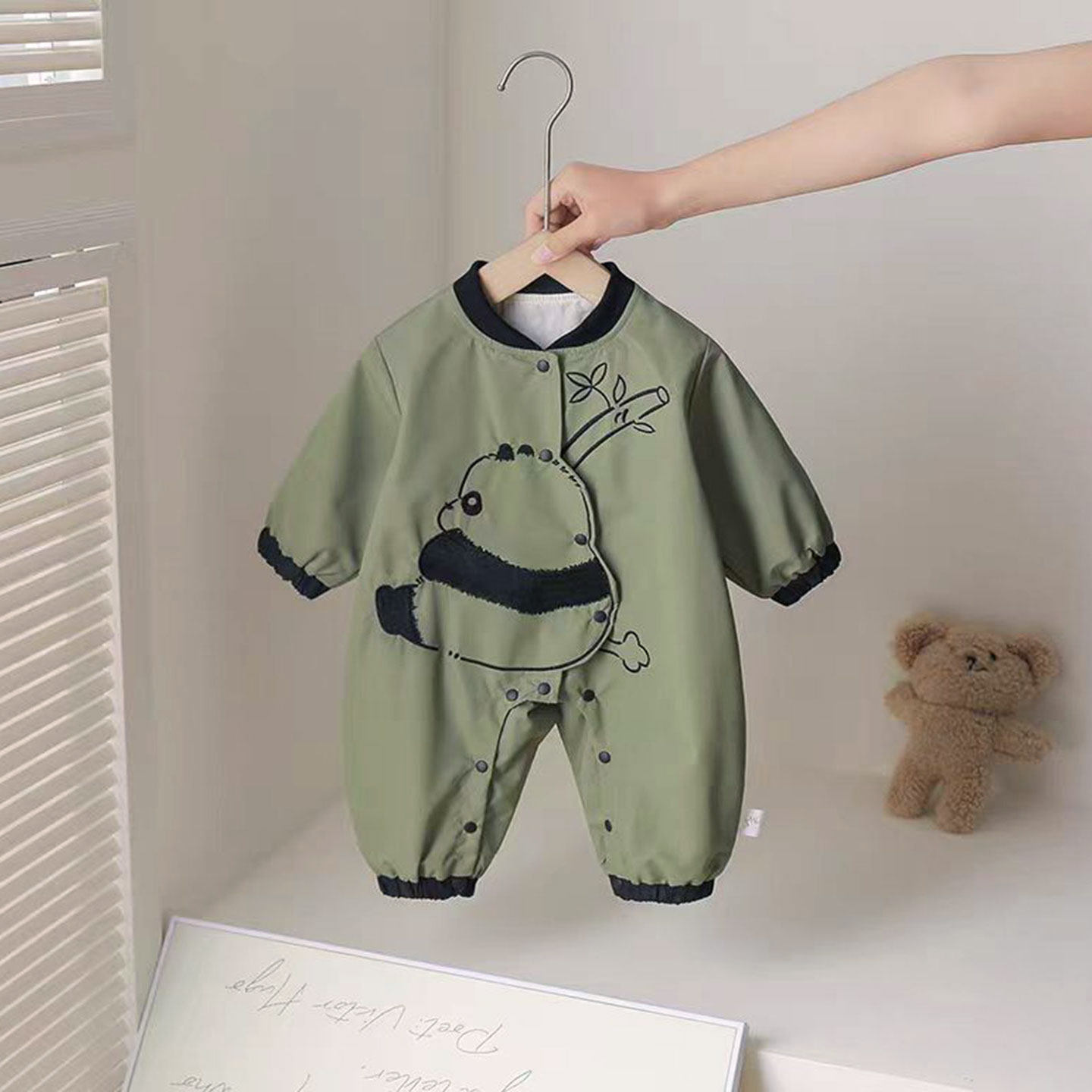 婴儿空气棉连体衣薄夹棉男女宝宝外出服A类加厚连身爬服秋冬无骨