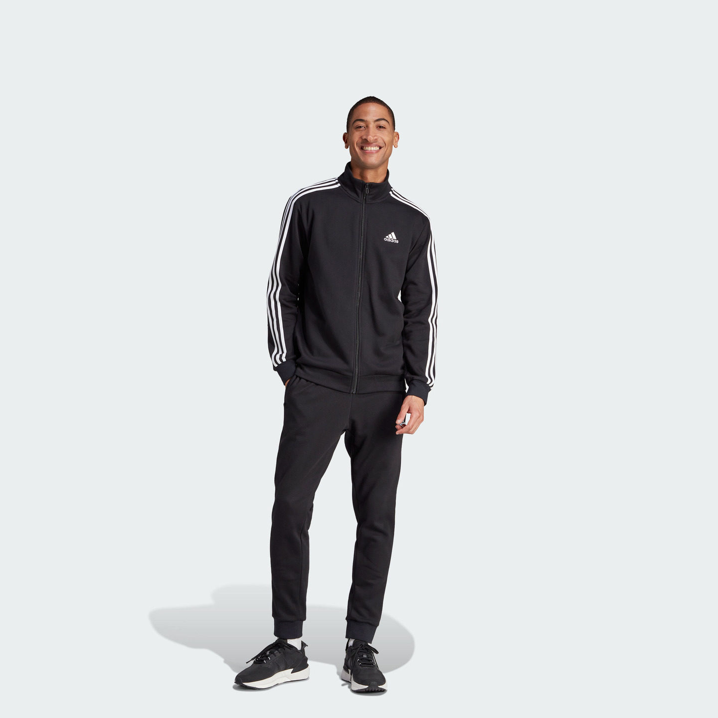 简约舒适三条纹加绒休闲套装 男adidas阿迪达斯轻运动 拉链卫衣卫裤由
