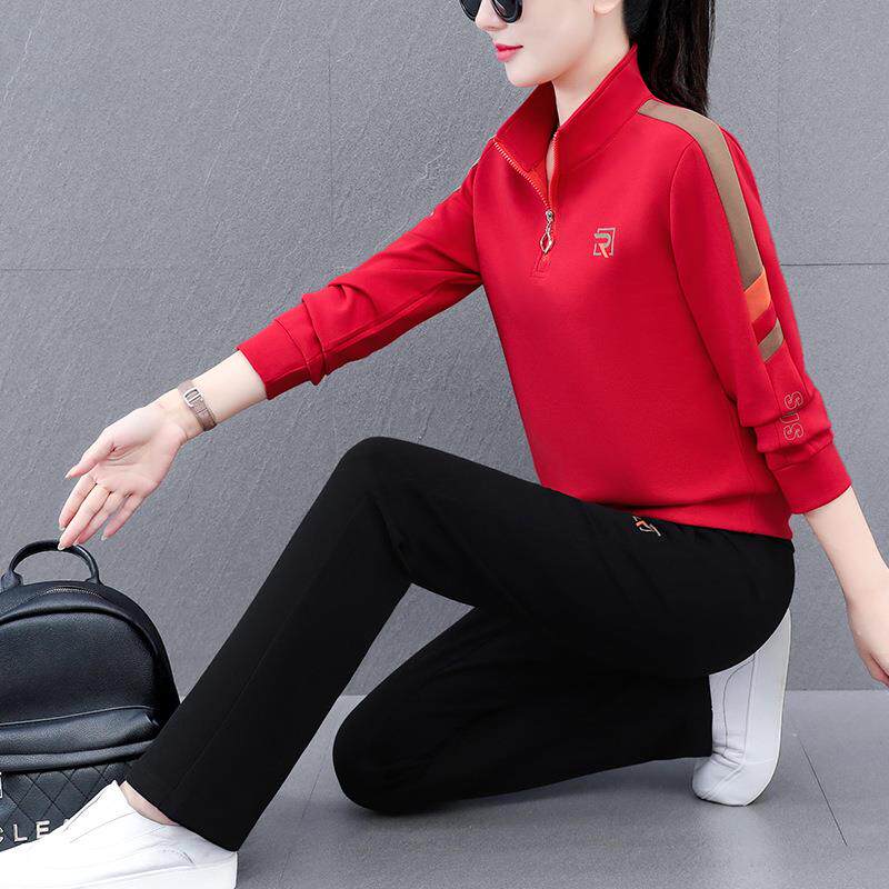 新款 时尚 套装 中年女春季 休闲两件套洋气上衣春秋 40岁妈妈春装
