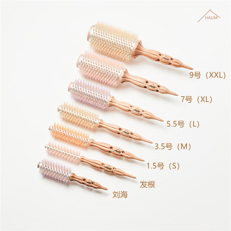 韩国进口Haum河能滚梳实木鬃毛圆梳造型梳子发根蓬松刘海大波浪卷