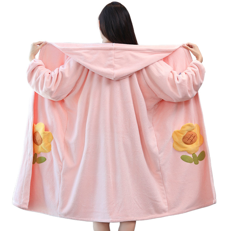 带帽浴裙不易掉毛 浴巾可穿可裹巾斗篷非纯棉大人家用吸水女浴袍式