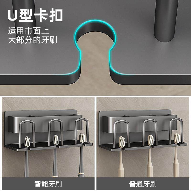 枪灰牙刷置物架电动牙刷架子牙杯免打孔化妆室漱口杯刷家庭壁挂式由