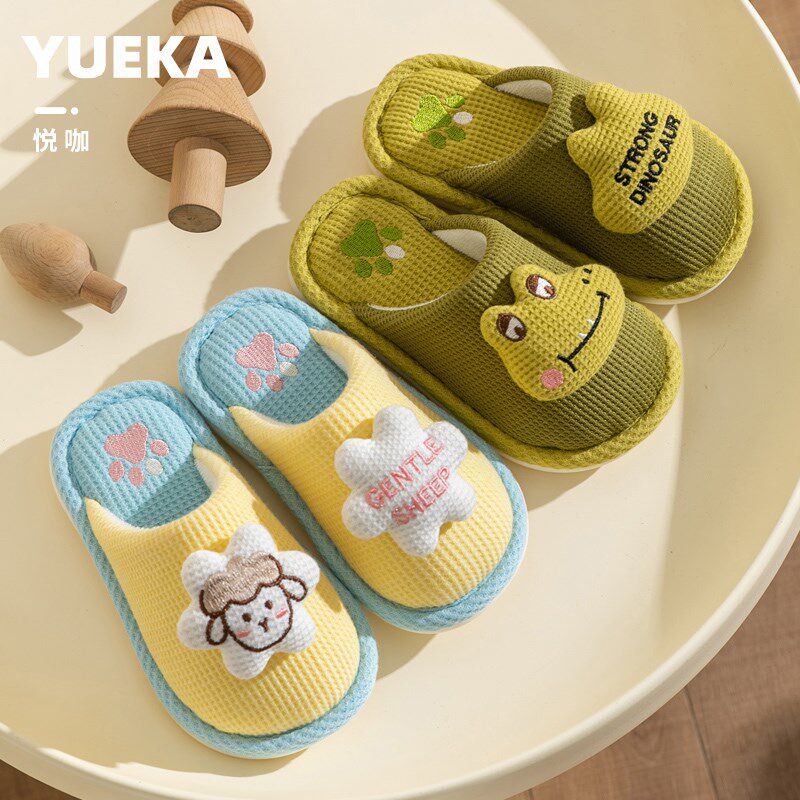 儿童拖鞋 棉麻室内幼儿园女童春秋小孩亲子宝宝男童地板防滑家居鞋