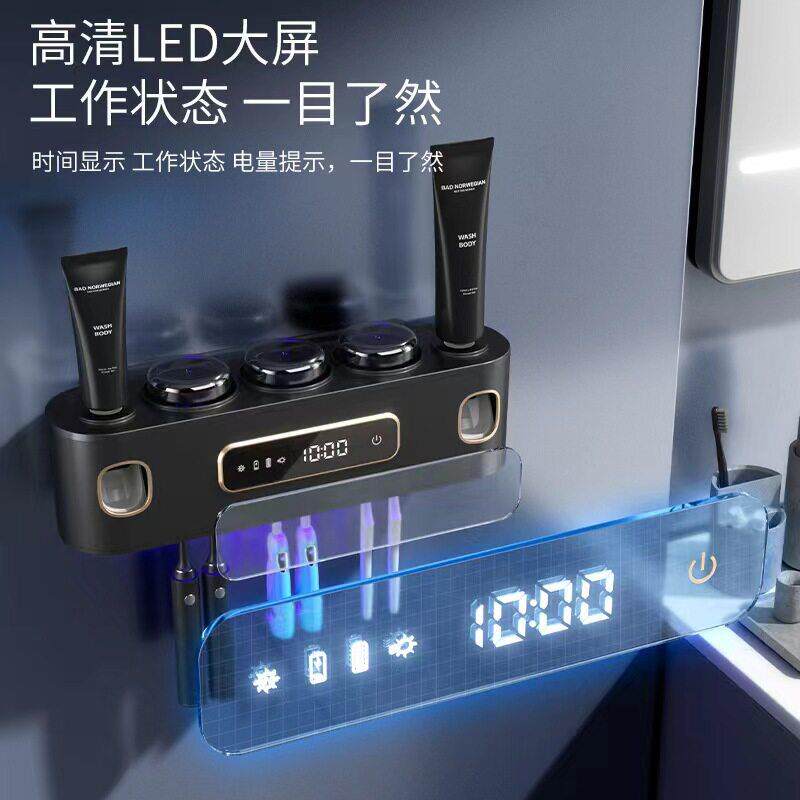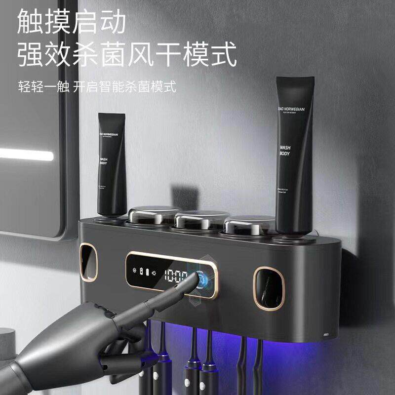 牙刷消毒器杀菌烘干电动自动挤牙膏一体机置物架吹风仓智能壁挂式