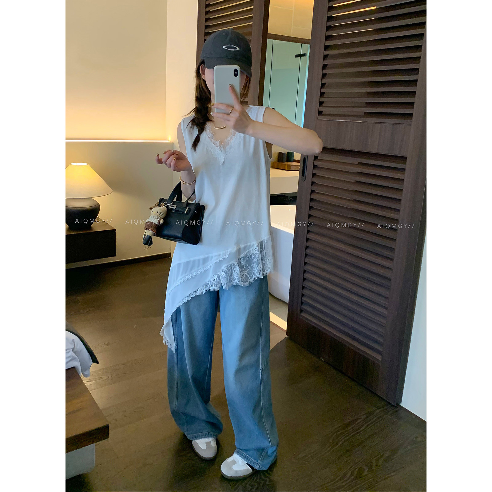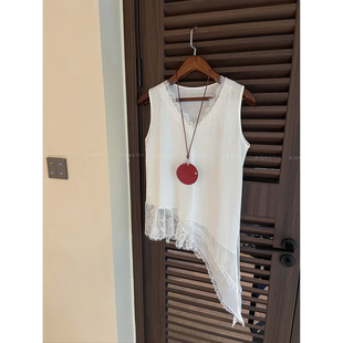 爱情魔鬼鱼 别致外穿上衣 白色设计感V领蕾丝拼接背心女2026年夏季