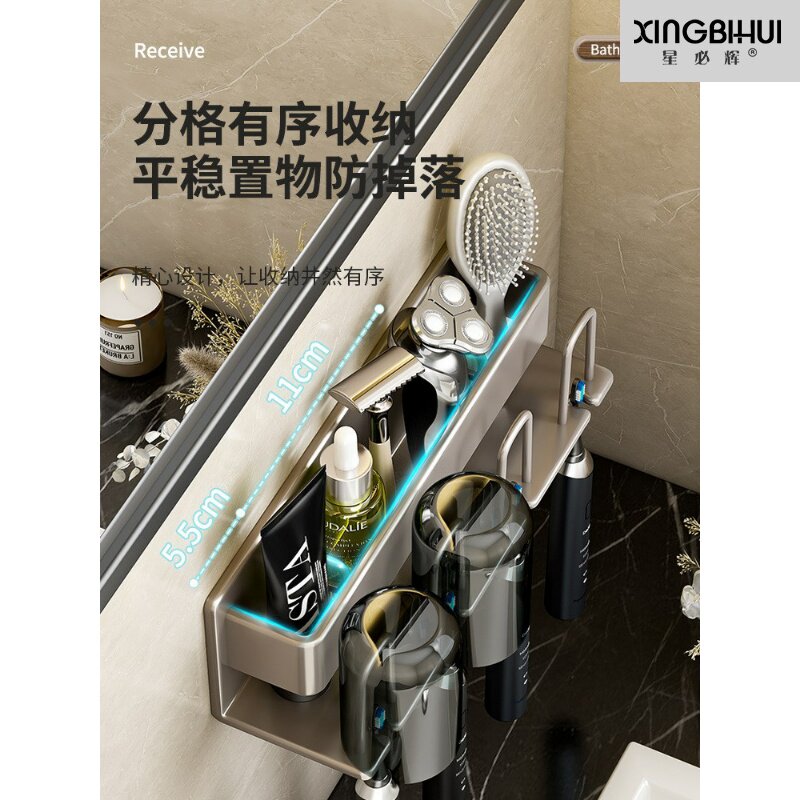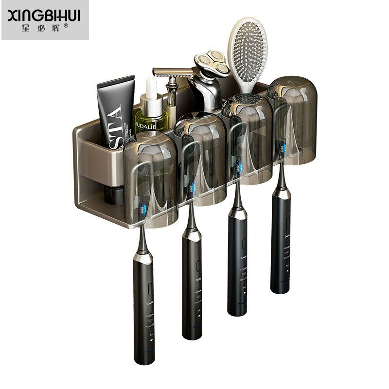 浴室收纳盒电动牙刷架 牙刷置物架免打孔漱口杯牙膏架壁挂式