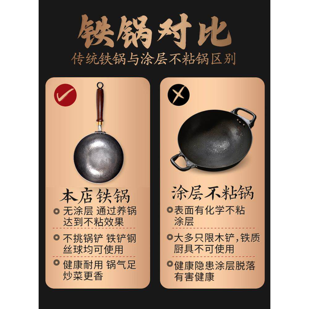 炒锅家用不粘锅无涂层燃气灶适用 章丘炒菜锅传统铁锅官方旗舰老式