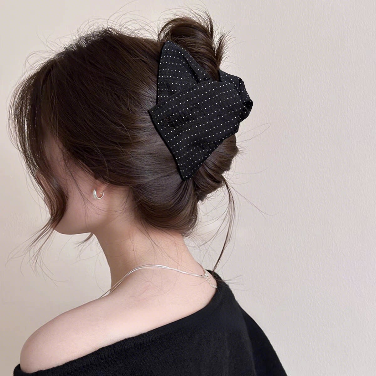 布艺波点三角抓夹赫本风后脑勺盘发夹半扎发鲨鱼夹 法式