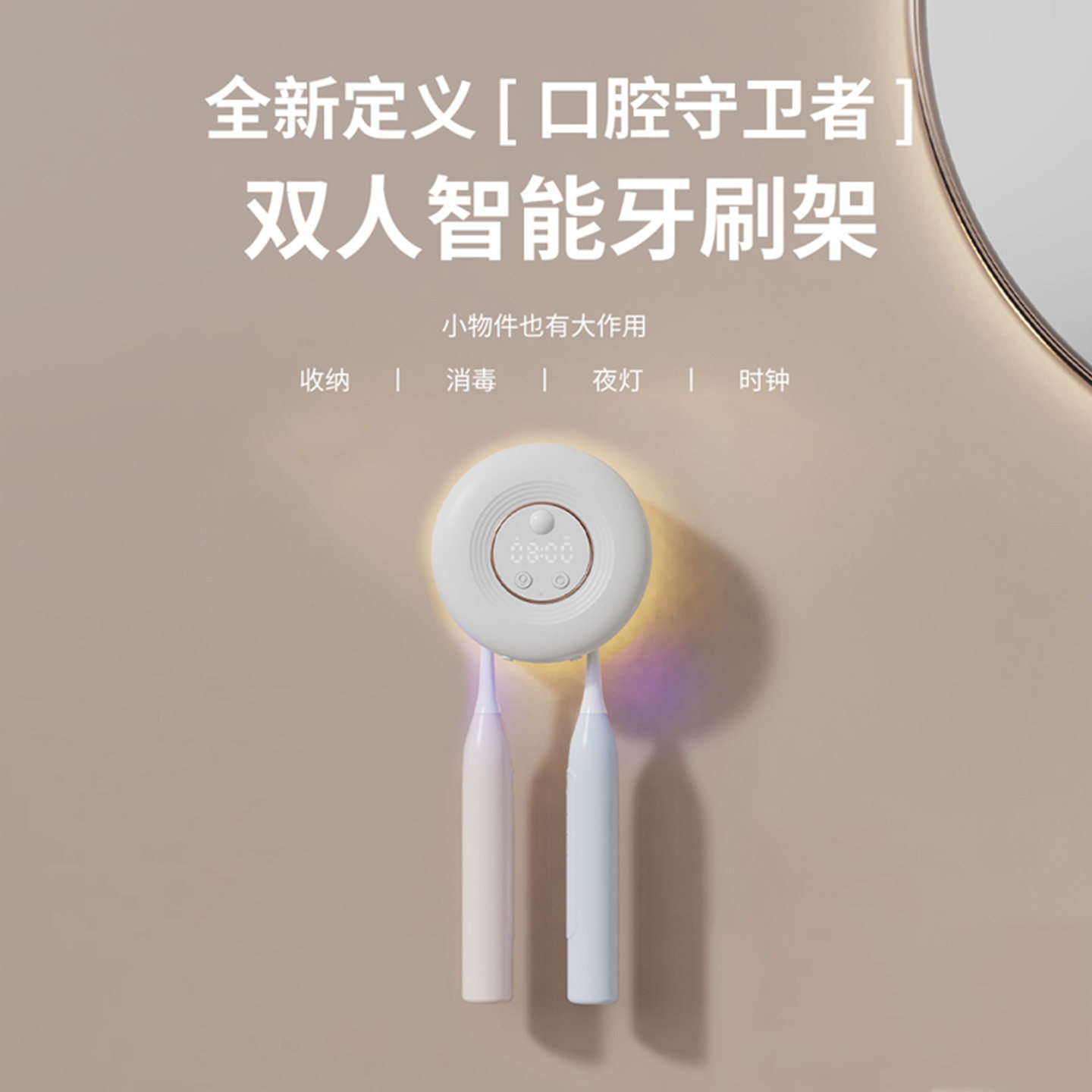 电动牙刷牙杯架挂墙置物架漱口杯 智能杀菌牙刷消毒器免打孔壁挂式
