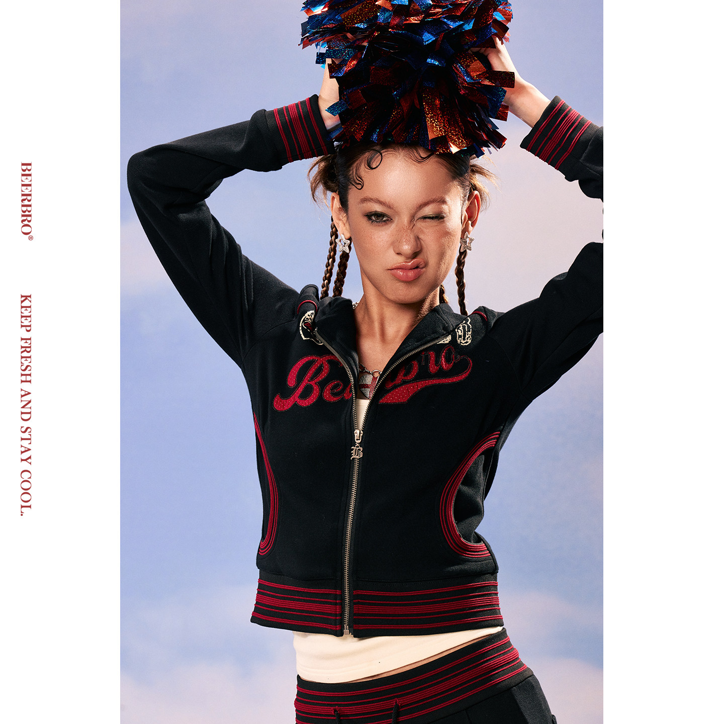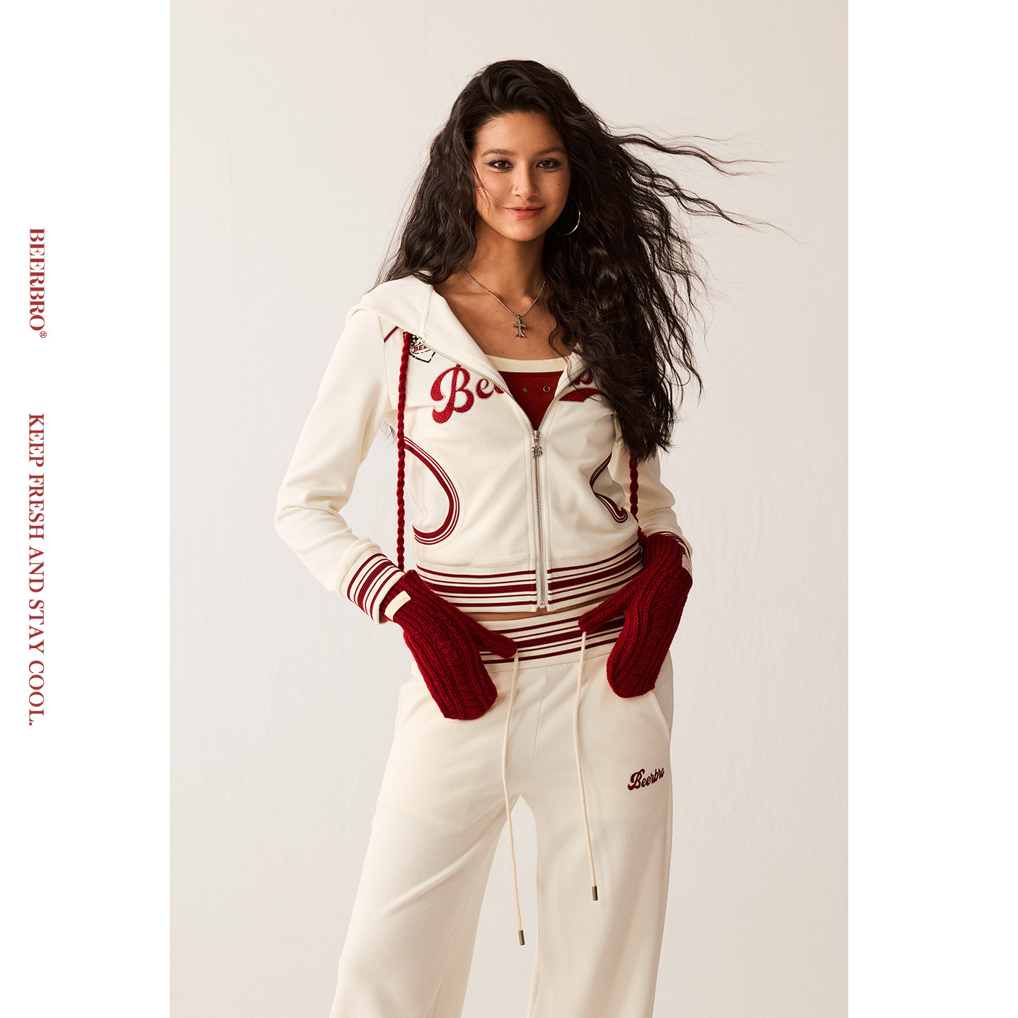 休闲运动撞色贴布绣弹力卫衣卫裤 BeerBro 复古声浪 美式 套装由