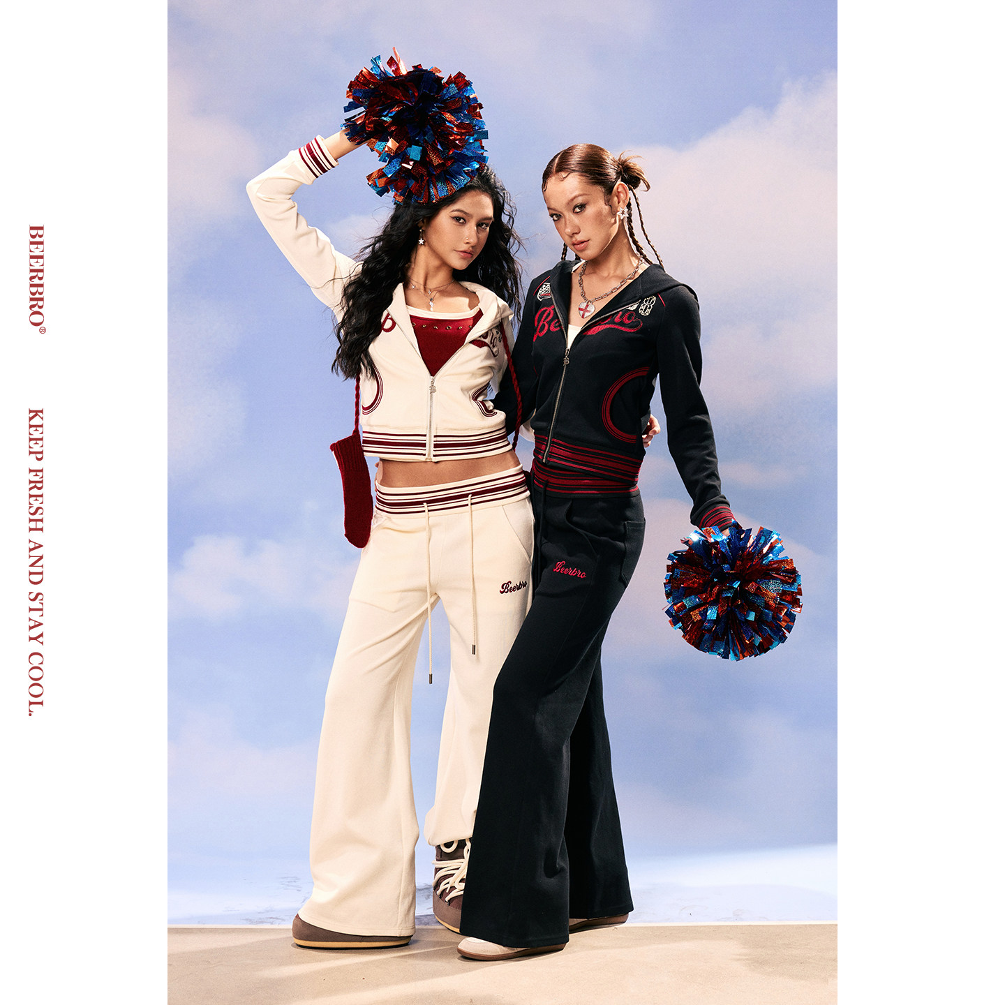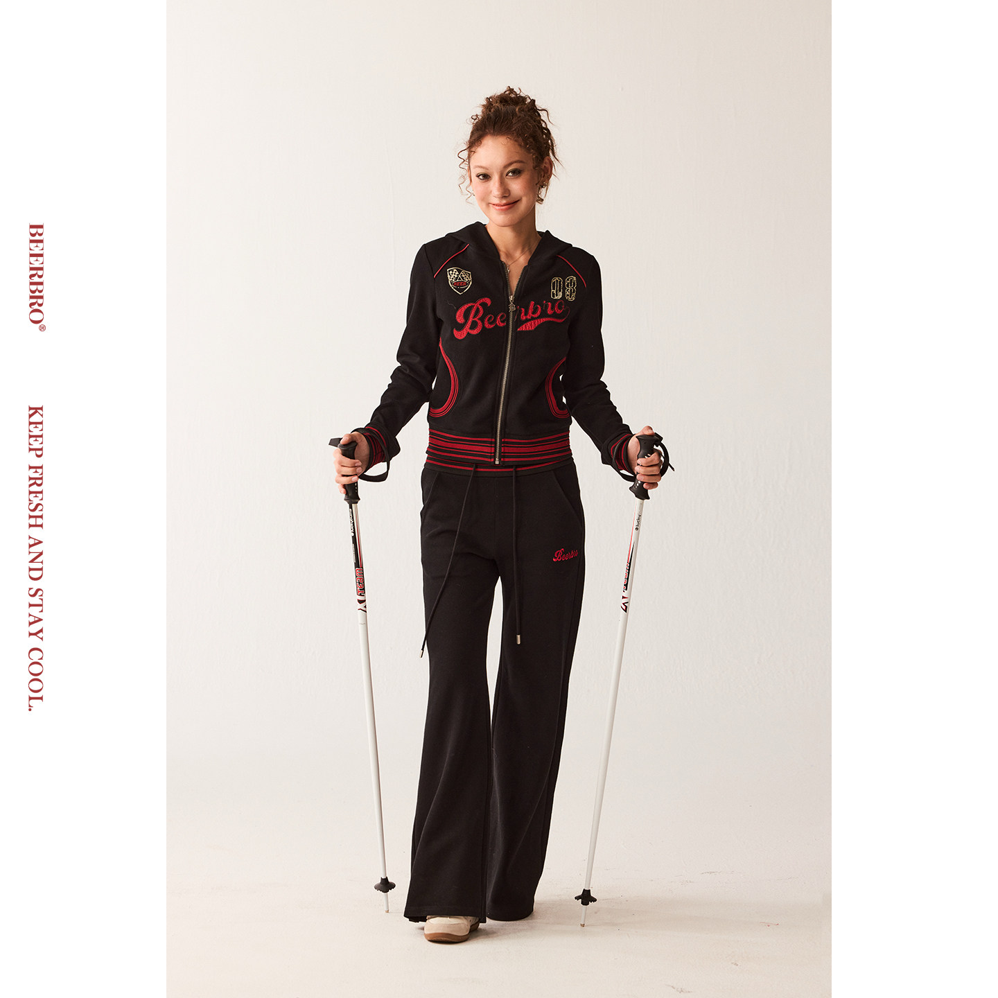 休闲运动撞色贴布绣弹力卫衣卫裤 BeerBro 复古声浪 美式 套装