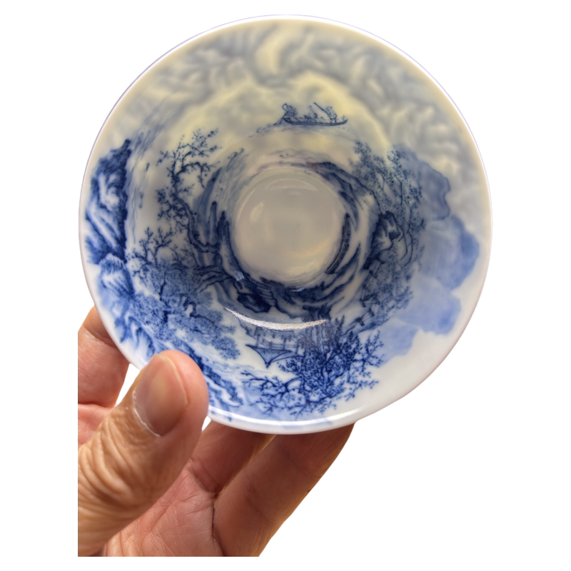 归舟柴窑青花瓷手绘茶杯陶瓷功夫茶具单杯品茗杯茶艺陶瓷主人杯子由