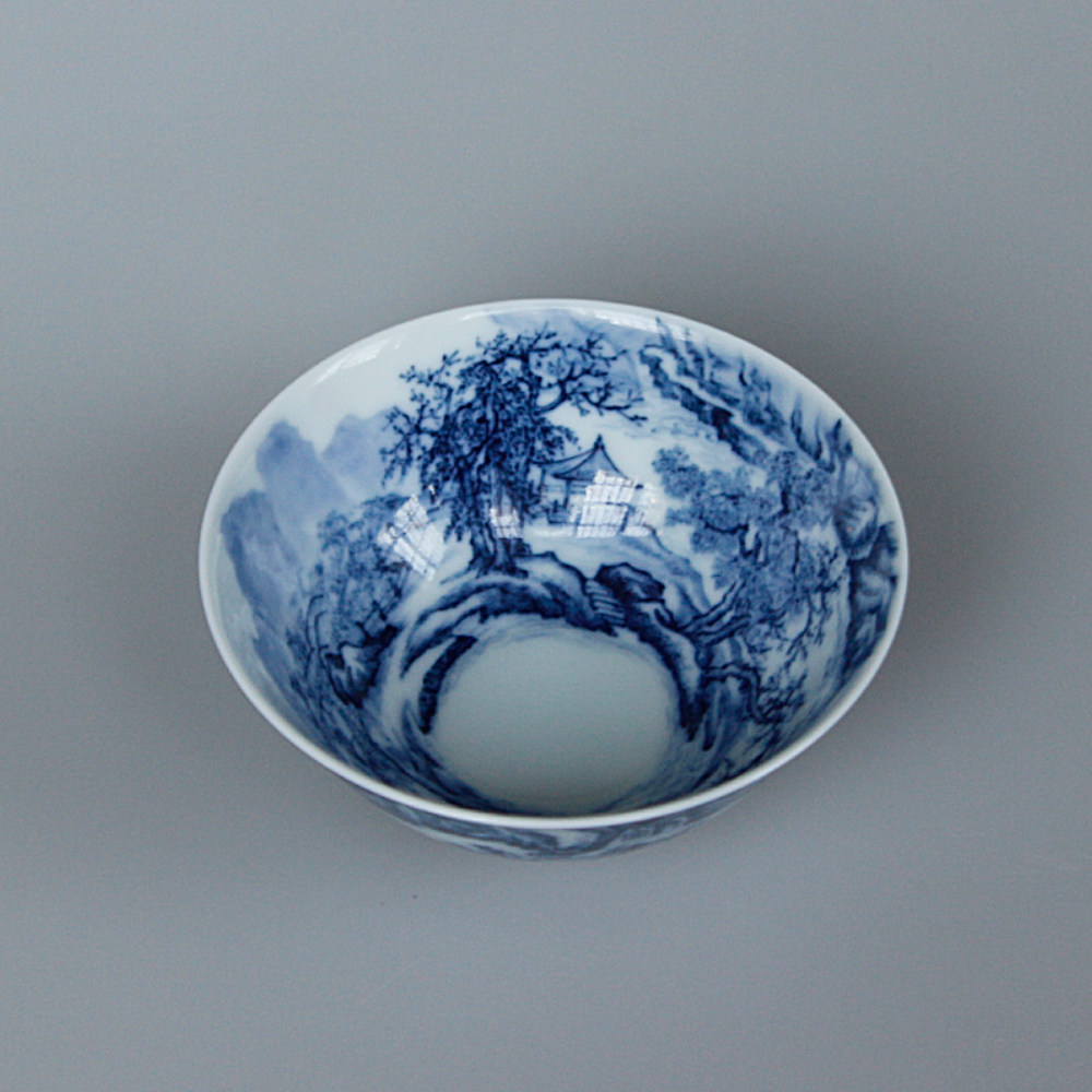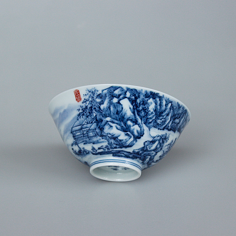 归舟柴窑青花瓷手绘茶杯陶瓷功夫茶具单杯品茗杯茶艺陶瓷主人杯子