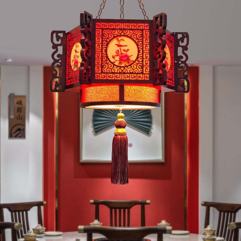 吊灯复古中国风古典客厅灯简约现代餐厅茶楼饭店大厅实木灯具 中式