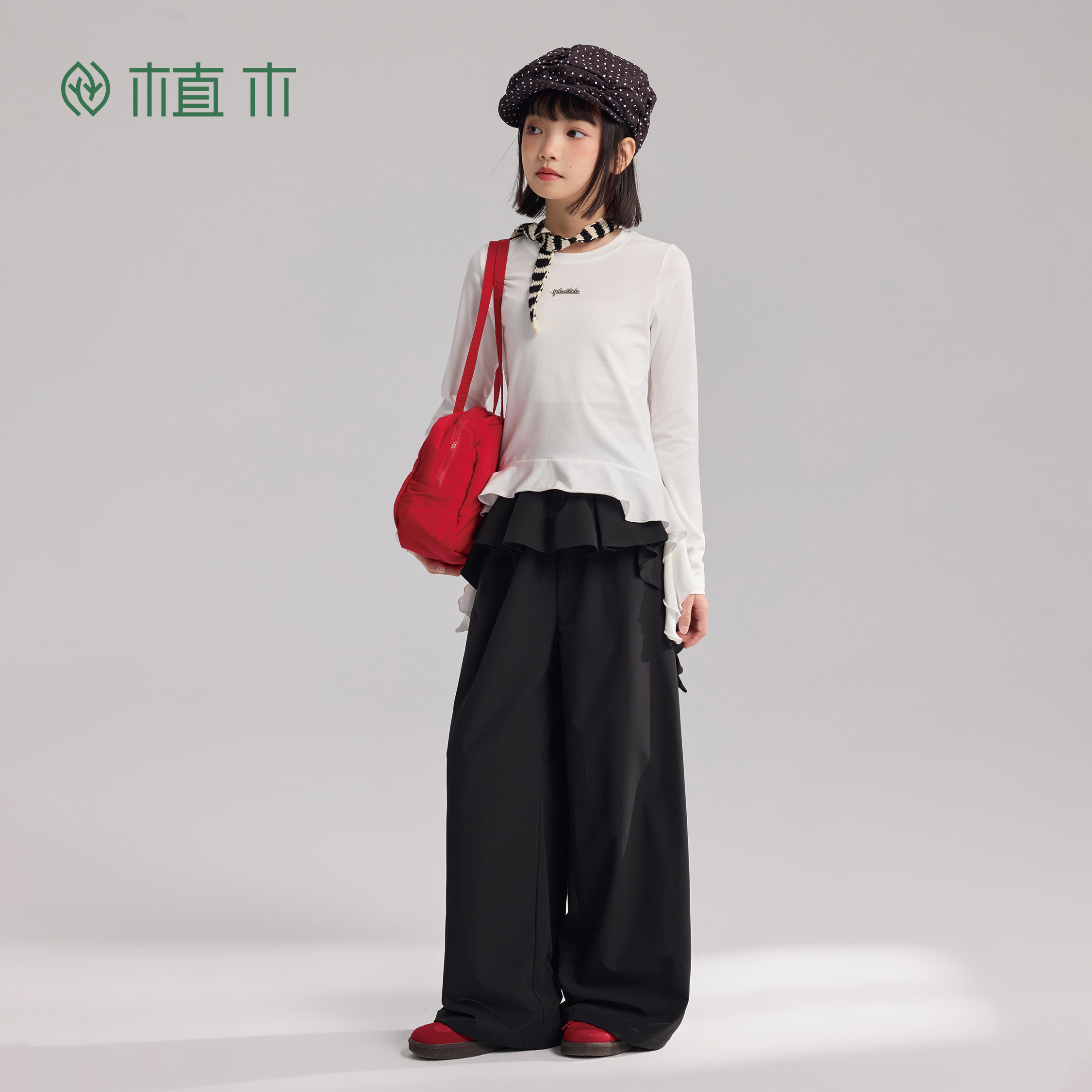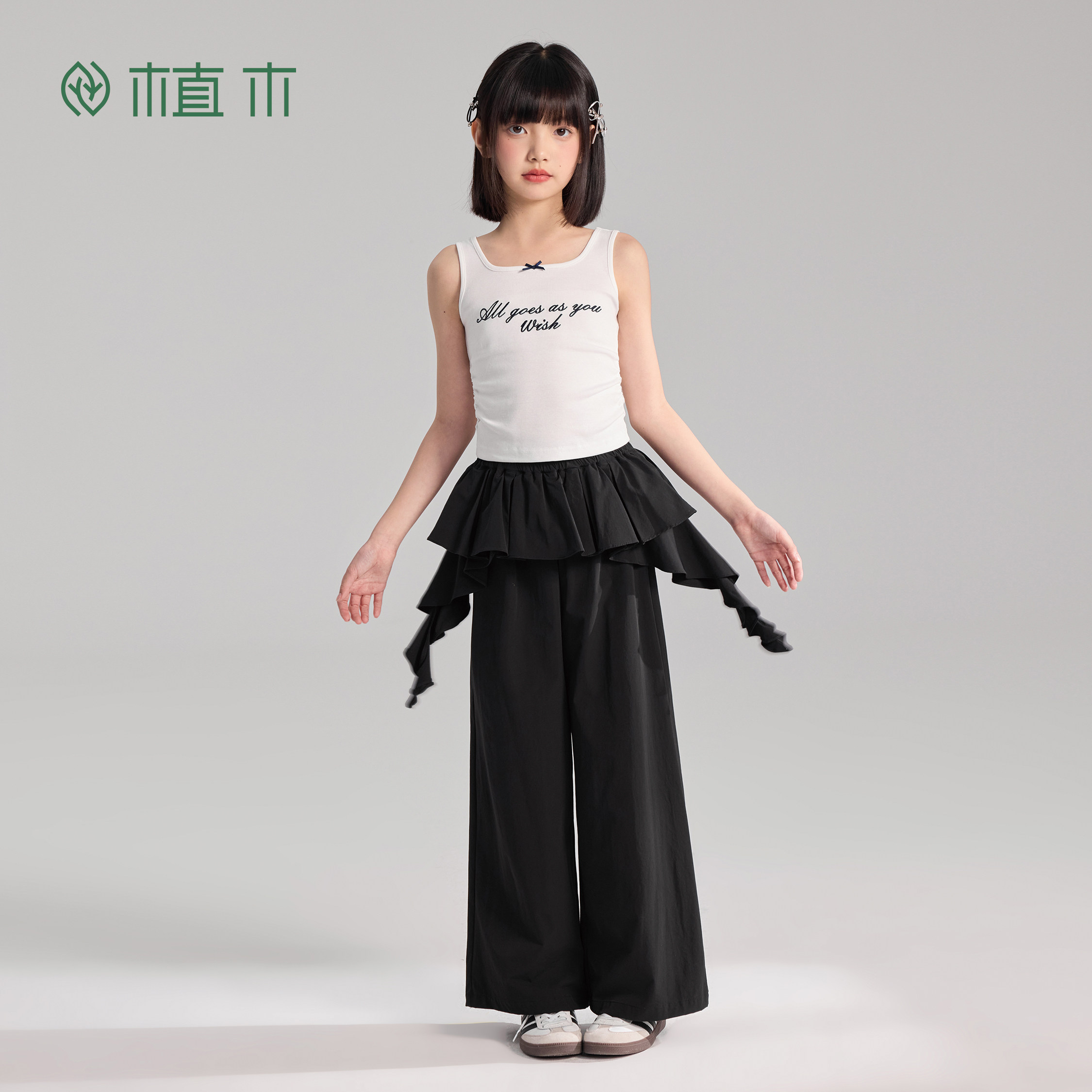 子儿童直筒裤 植木童装 解构裙裤 裙摆拼接女童裤 2026年春夏新款