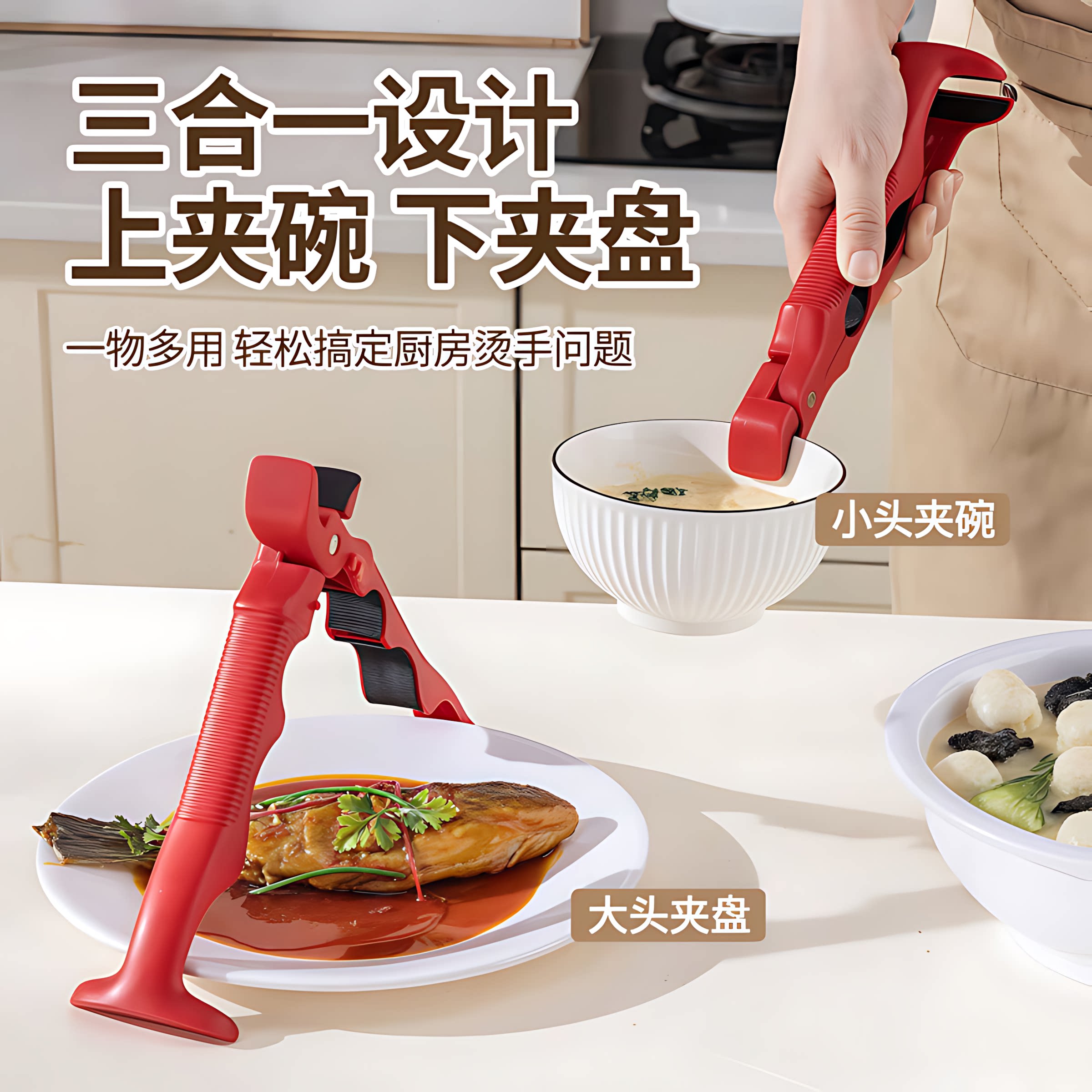 三合一防烫夹取碗夹厨房硅胶夹盘夹碗两用防滑碗钳家用创意提盘器