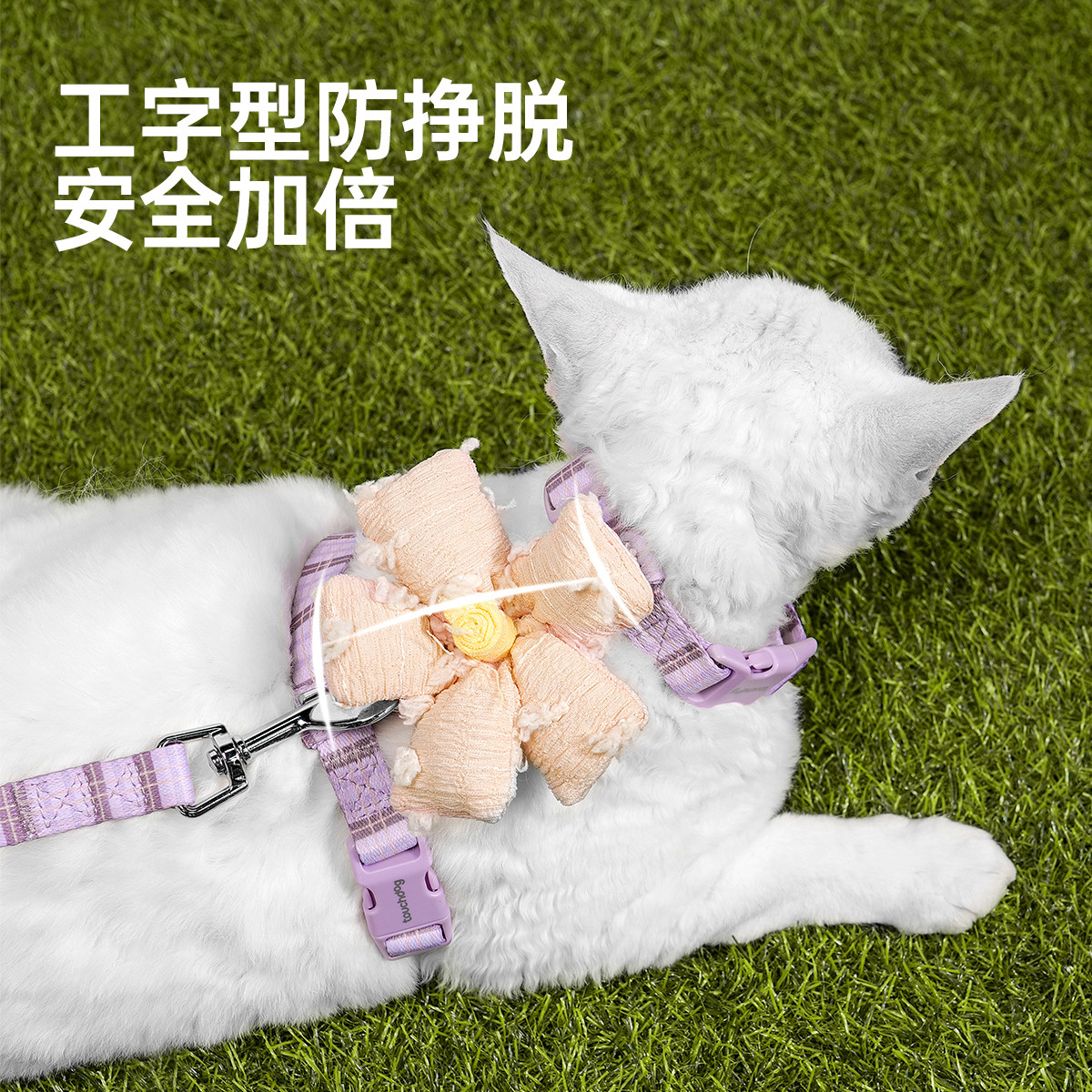 可调节工字形防挣脱猫咪牵引绳 HiDREAM自由探索猫胸背带套装