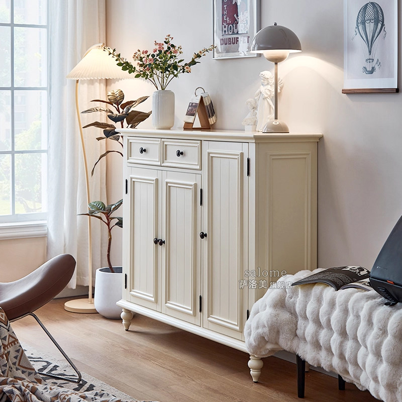 柜简约现代白色家用门口入户玄关一体大容量鞋 架 全实木鞋 萨洛美式由