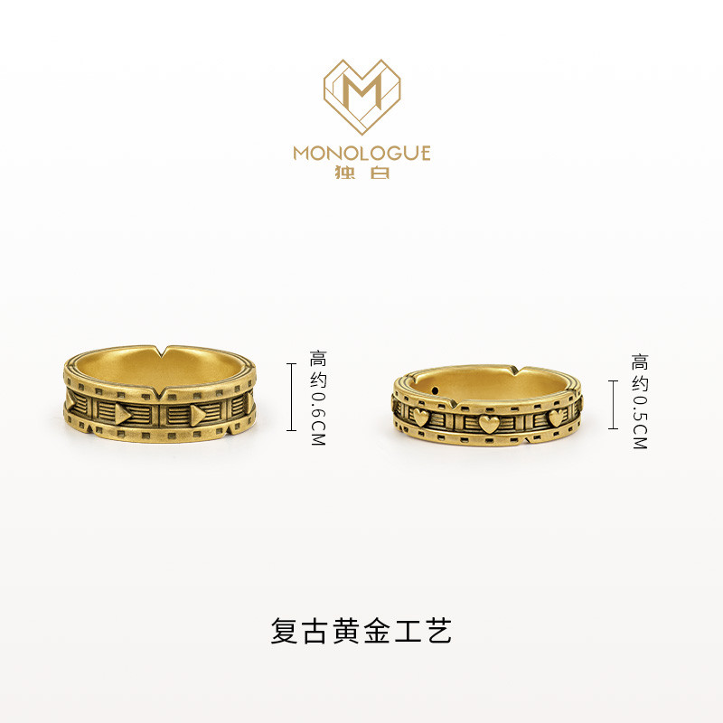 为您提供商品MONOLOGUE独白黑金复古黄金足金胶片爱心戒指情侣戒指生日礼物的详细介绍,