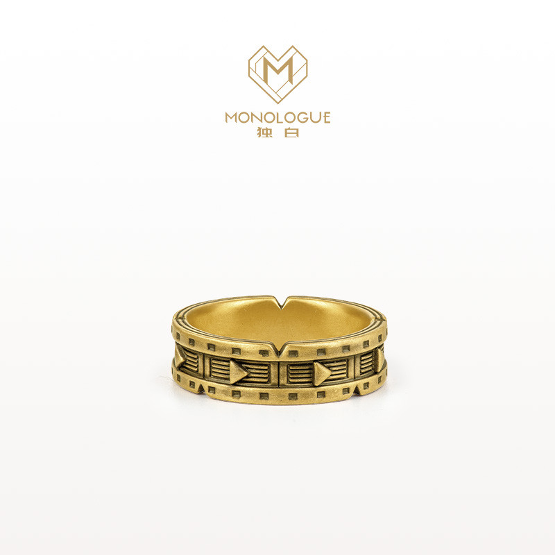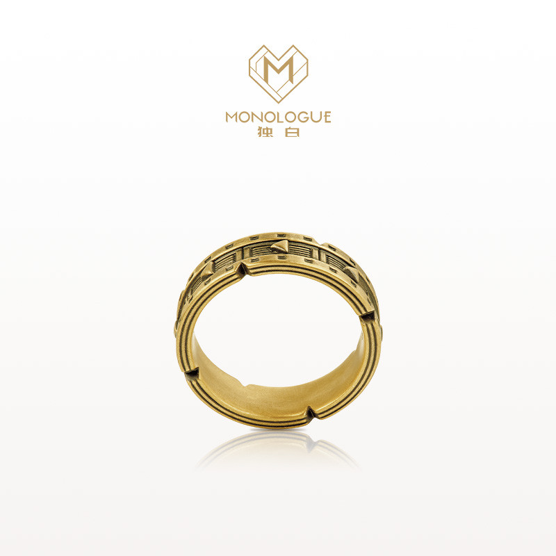 MONOLOGUE独白黑金复古黄金足金胶片爱心戒指情侣戒指生日礼物