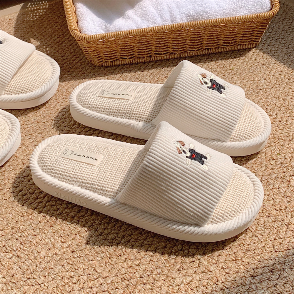 细细条 ins可爱狗狗一字拖鞋 软底防滑居家外穿凉拖鞋 男女 情侣夏季