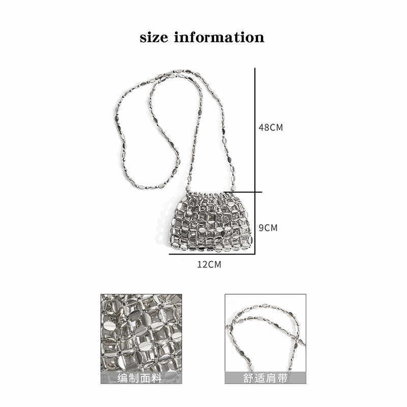 为您提供商品橙子少女小众设计金属银色镂空迷你包包装 编织耳机斜挎小包 饰新款的详细介绍,