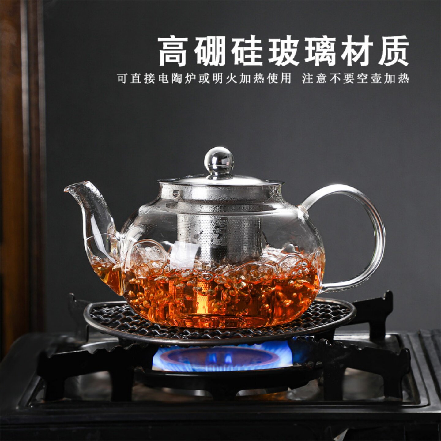 为您提供商品耐高温玻璃不锈钢过滤泡茶壶家用防爆茶壶加厚花茶壶功夫茶具套装的详细介绍,