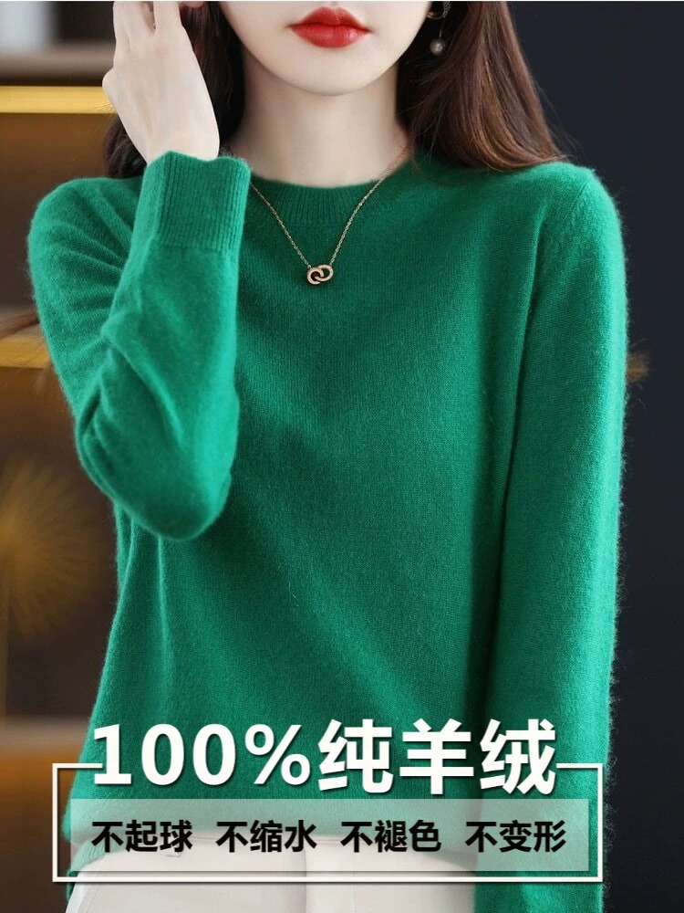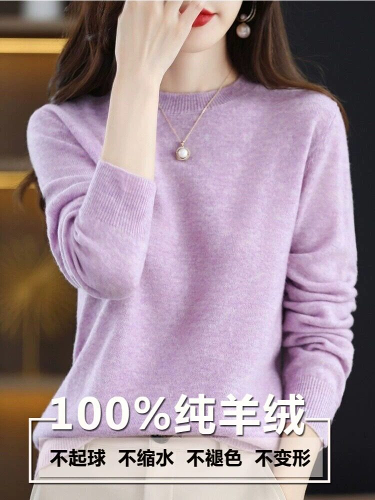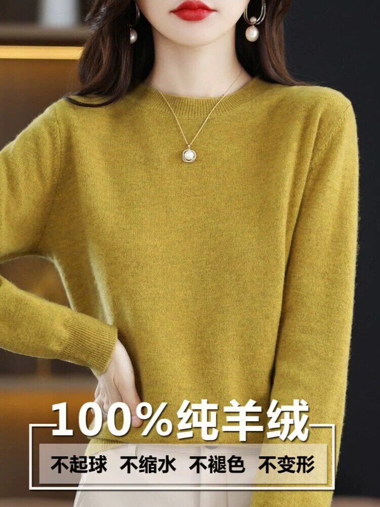 澳洲美丽诺羊绒衫 女圆领内搭大尺码 毛衣打底针织羊毛 正在清仓