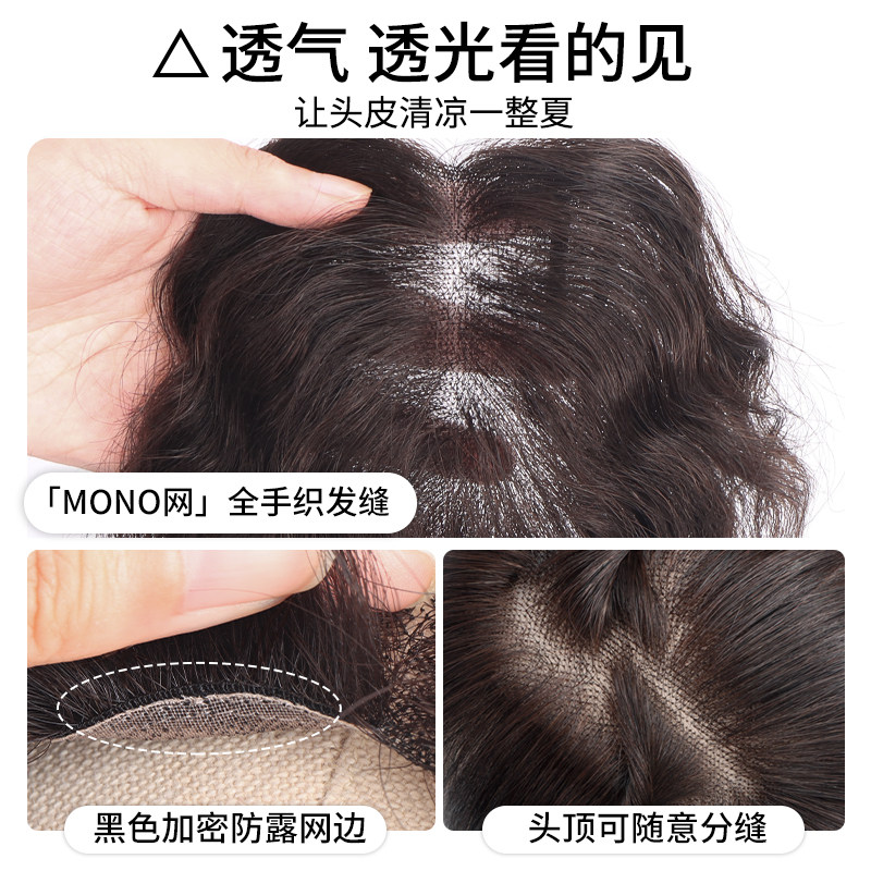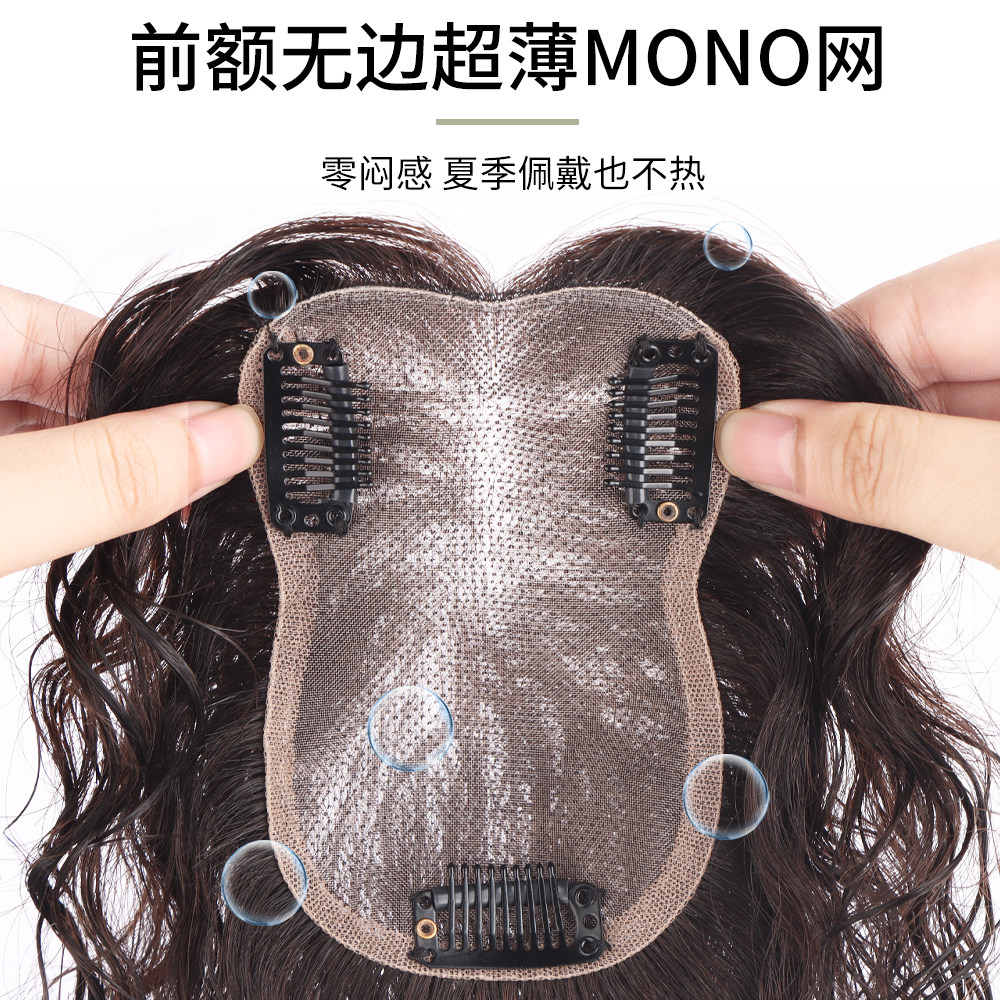 mono网卷发假发片轻薄肤色手织真人发丝持久烫遮白发蓬松刘海假发