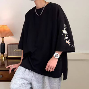 加肥加大码 新中式 短袖 男t恤夏季 上衣服 宽松国风潮牌冰丝六七分袖