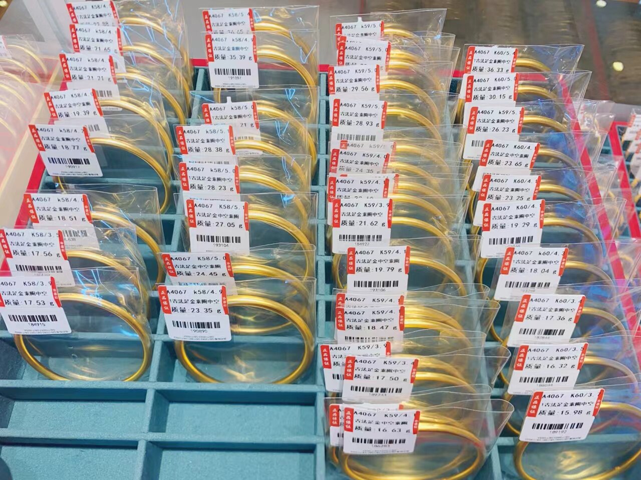 手饰计价 老庙黄金足金手镯纤丽磨砂镯子送礼物官方旗舰店正品