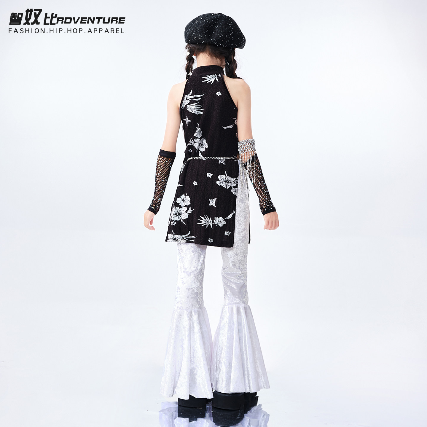女童jazz穿搭走秀女团街舞黑色旗袍长裙舞蹈演出服 儿童爵士舞套装由
