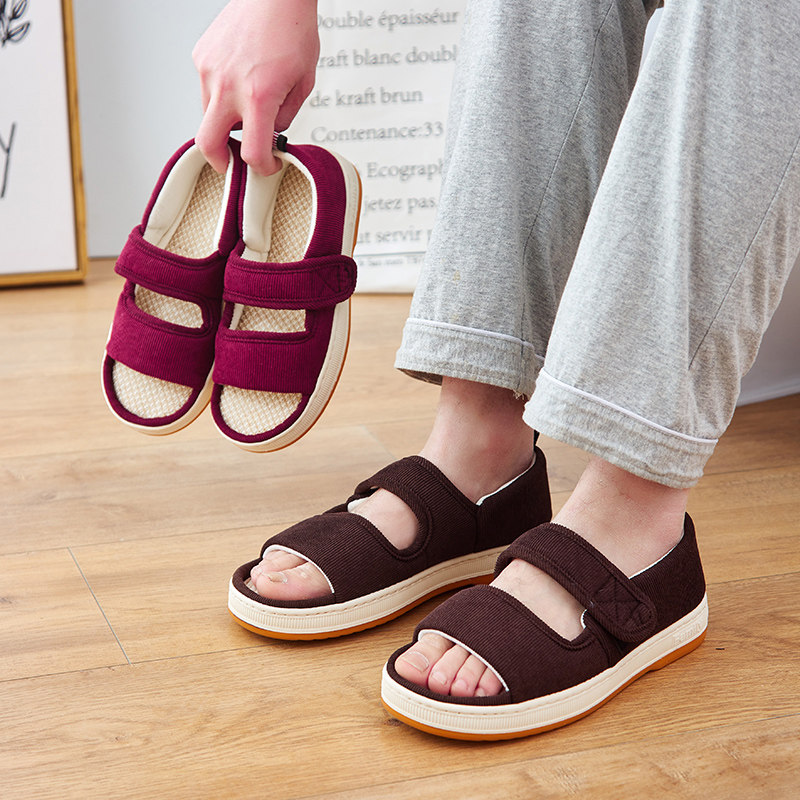 中老年防滑柔软凉拖鞋 棉麻布拖男外穿女 居家厚底亚麻透气老人夏季由