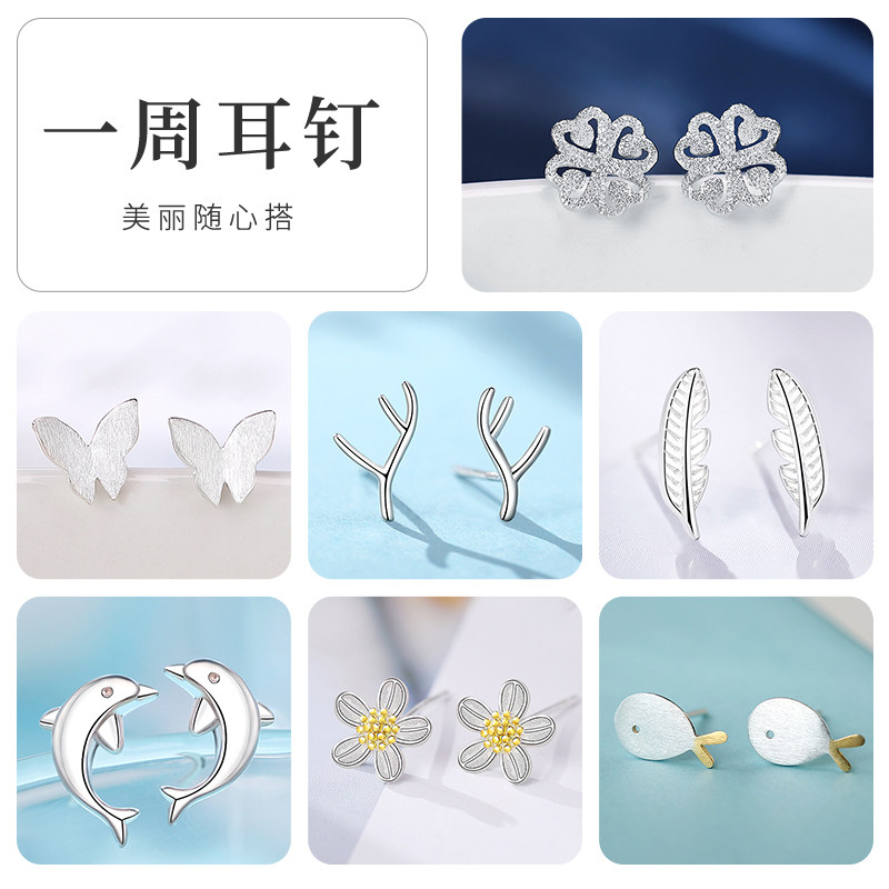 适合女生生日礼物一周耳钉礼盒套装 组合银饰品 纯银999高级感套装