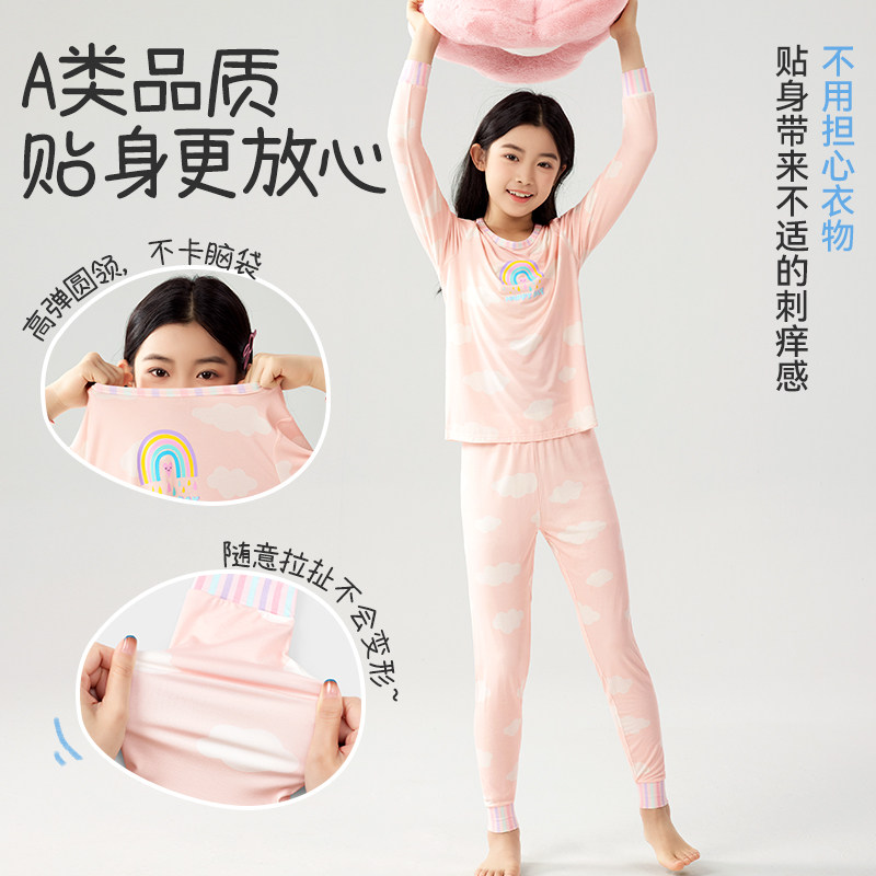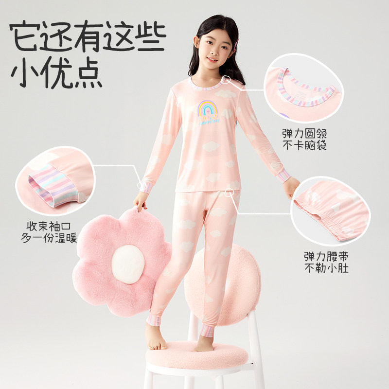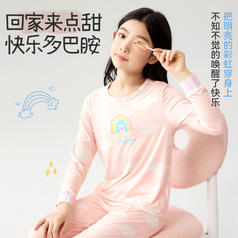 久岁伴儿童秋衣秋裤 中大童宝宝舒适睡衣 女童春秋优可丝家居服套装