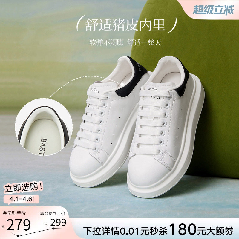 运动休闲板鞋 女鞋 松糕厚底麦昆小白鞋 百思图26春新款 胶囊鞋 柜由