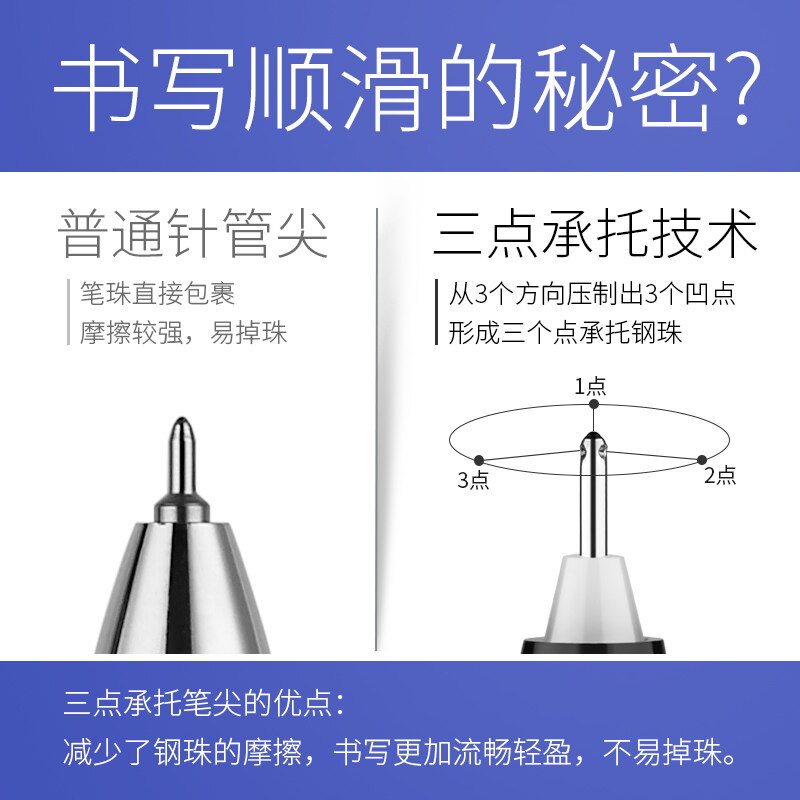 按动式 书写顺滑大容量 中性笔0.5mm子弹头黑色红色蓝色三色套装